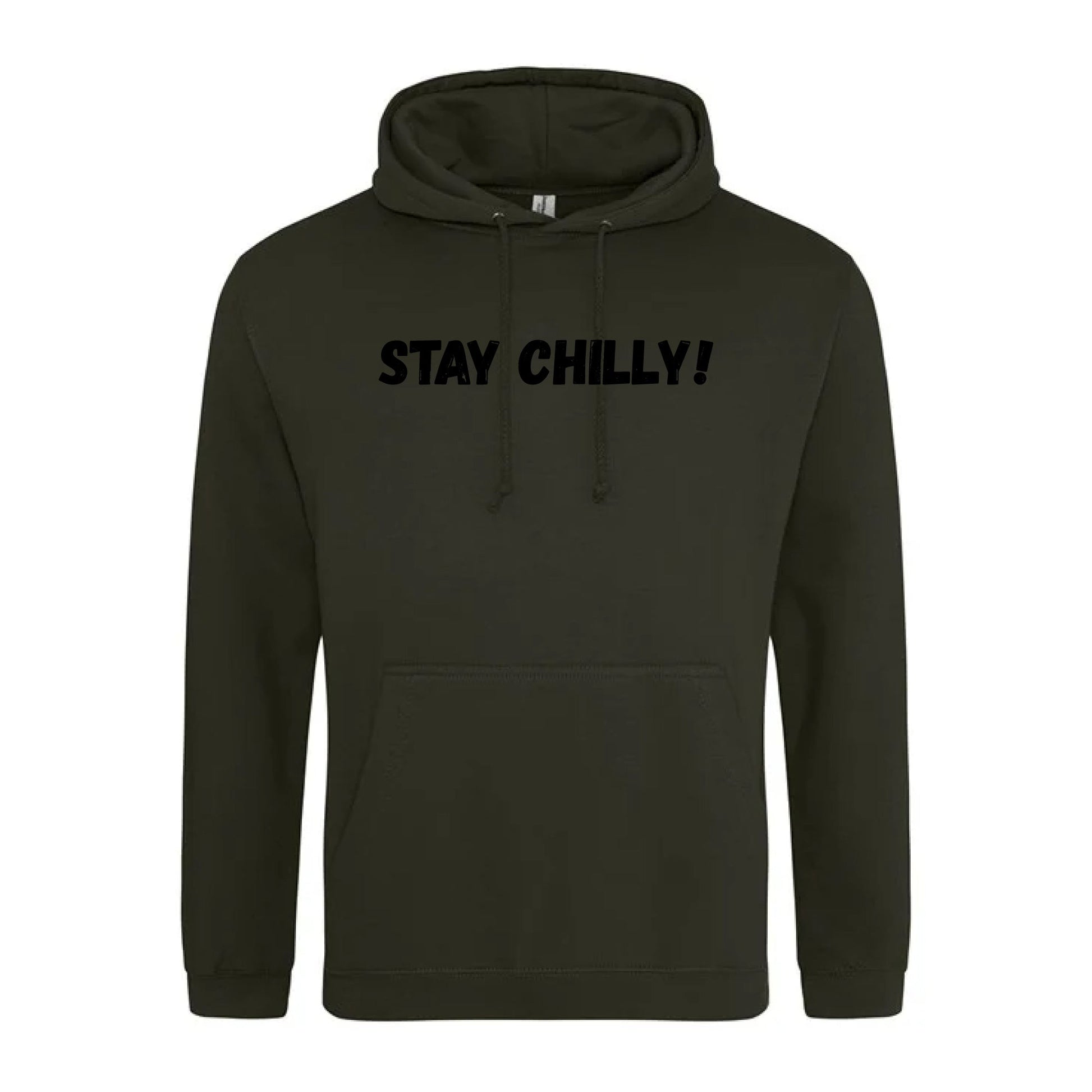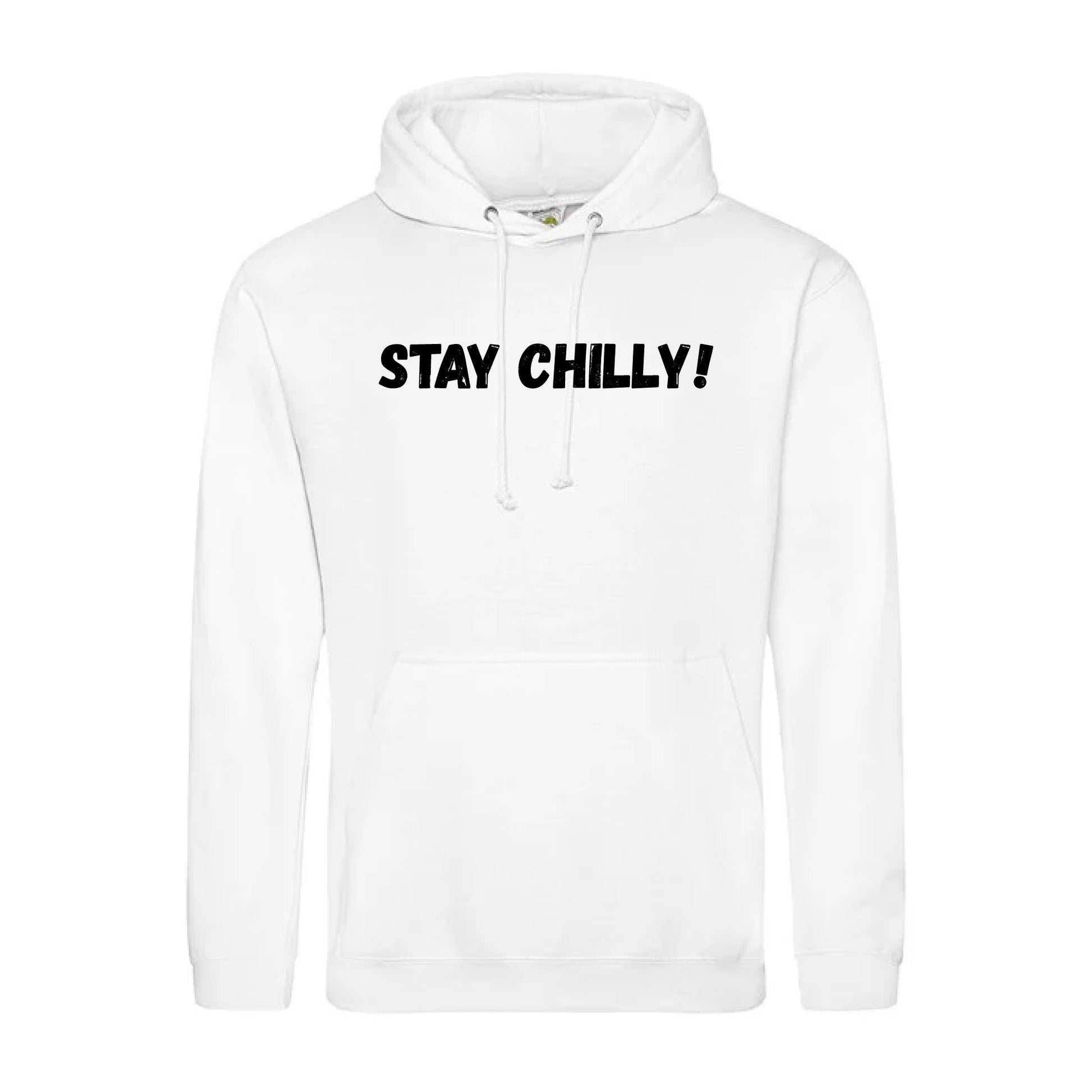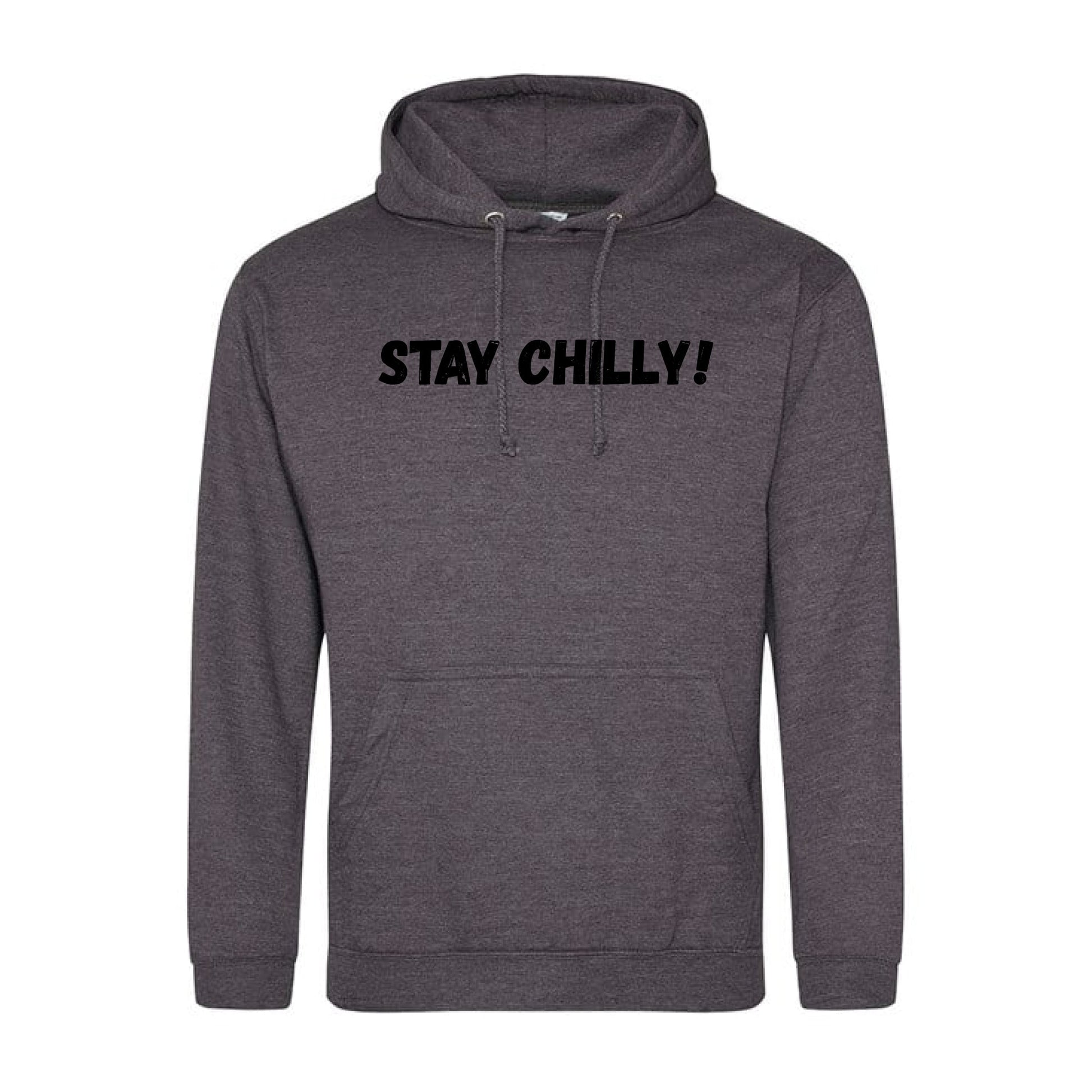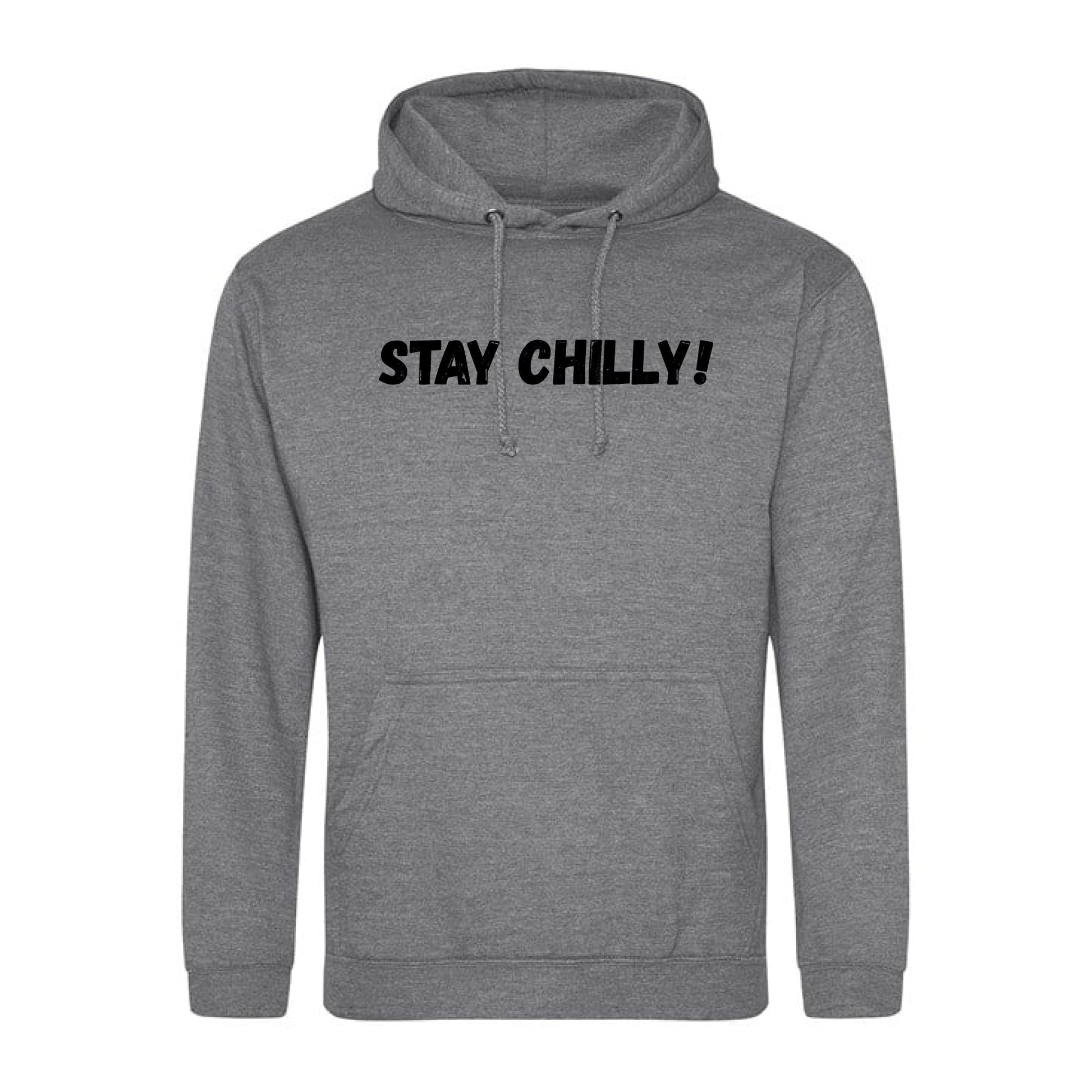 IBH Hoodie with black print of the slogan from Ice Bath Harry "STAY CHILLY!. These hoodies are 280gsm and blend of 80% cotton and 20% polyester.
