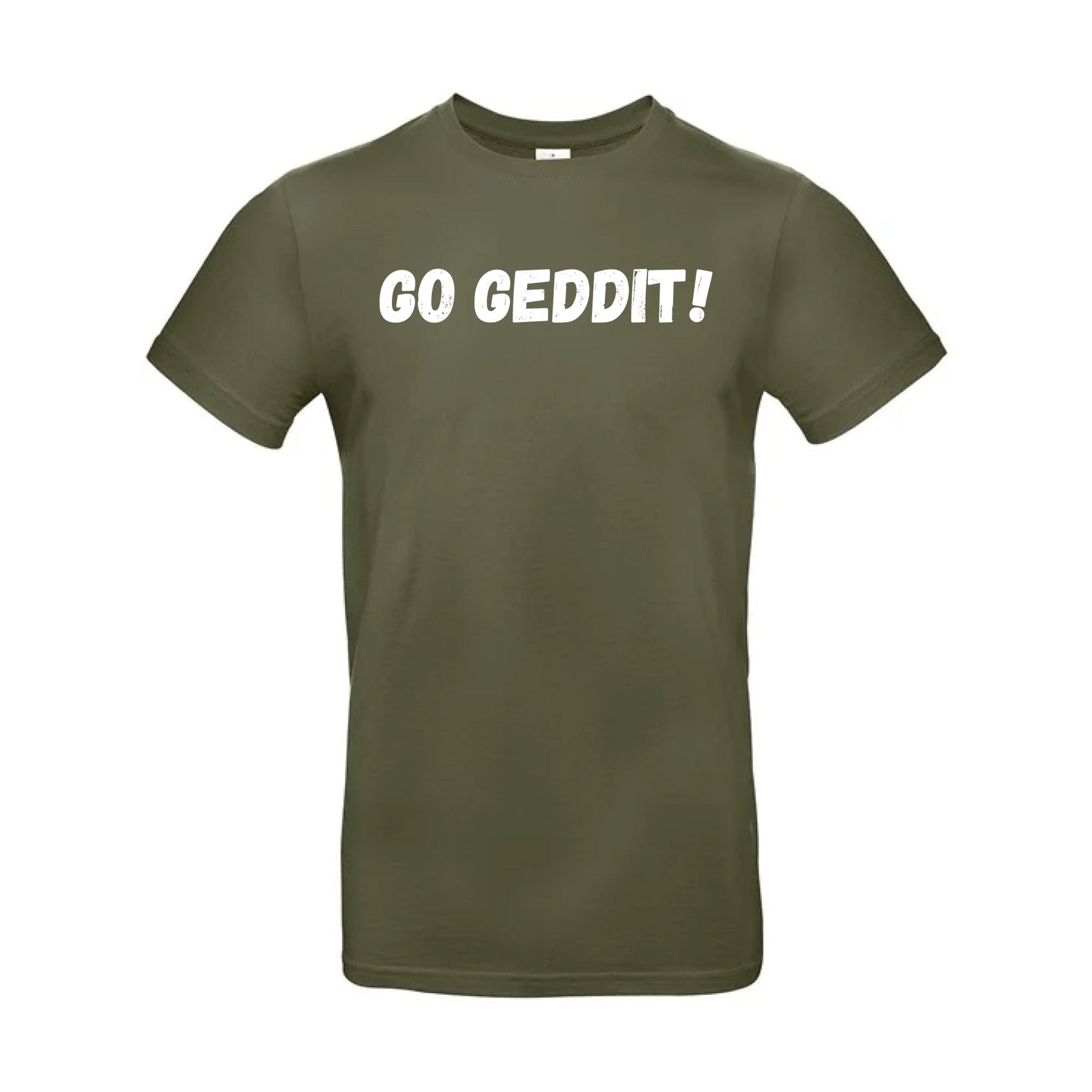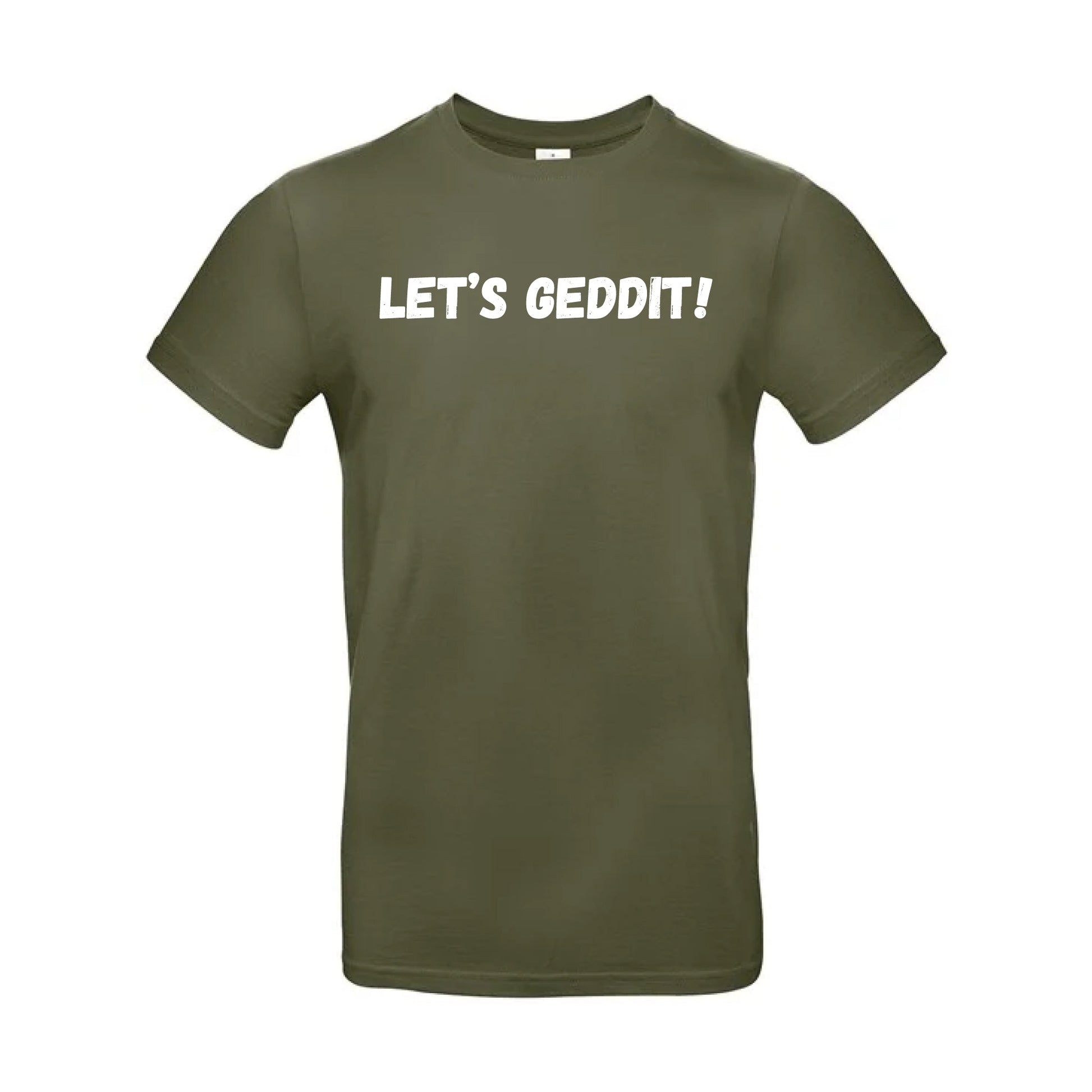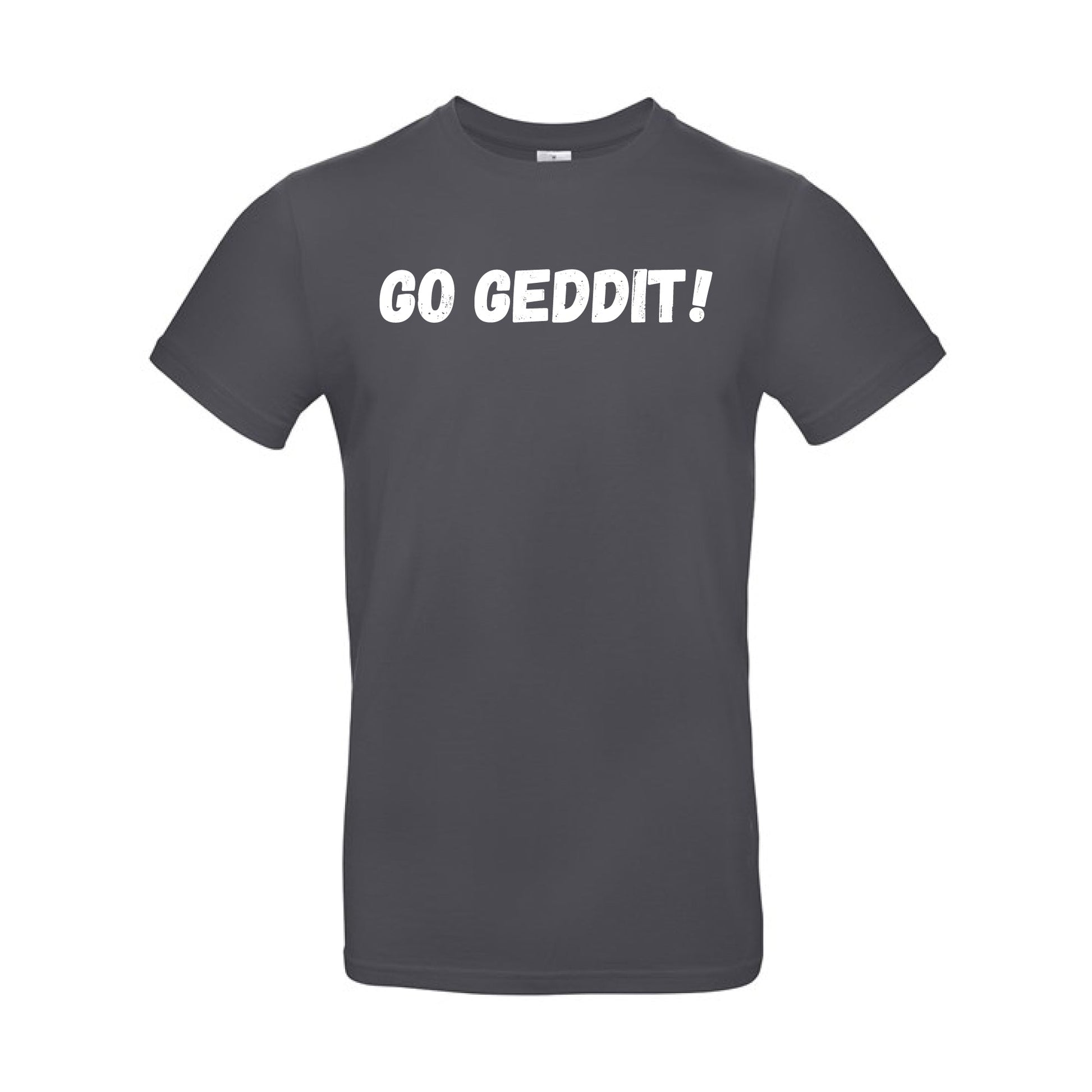 IBH T-Shirt with white print, your choice of slogan from Ice Bath Harry with either "LET'S GEDDIT!" or "GO GEDDIT!". These T-Shirts are 185gsm and are made from 100% Pre-Shrunk Ringspun Cotton.
